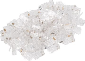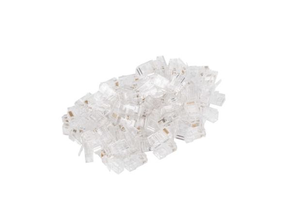 Set of 100 pcs of unshielded RJ-45 [8P8C] cat. 5E network plugs, intended mainly for UTP LAN cables.