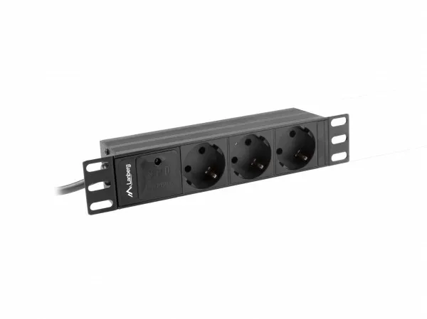 Lanberg PDU-03E-0200-BK - Kraftdistributionsenhet (kan monteras i rack) - AC 230 V - 4000 Watt - ingång: CEE 7/4 / CEE 7/7 - utgångskontakter: 3 (Typ E) - 1U - 10" - 2 m sladd - svart