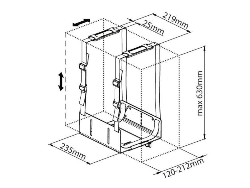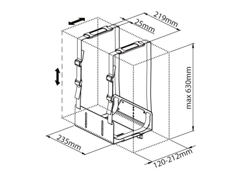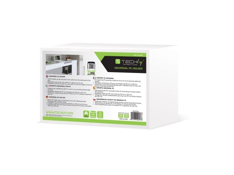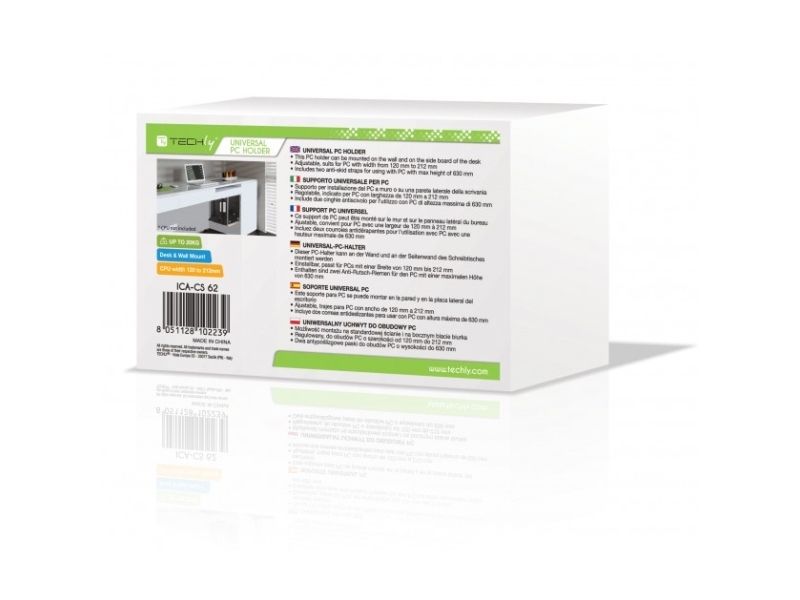 Techly ICA-CS 62, Bordsmonterad CPU-hållare, Skrivbord, 20 kg, Svart, Vågrät, 23,5 cm