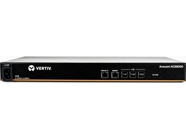 The Avocent ACS 8000 advanced console server offers upgraded and advanced features, that deliver scalable and high-performance solutions for IT administrators. The console server features a dual ARM core processor platform with dual Gigabit Ethernet ports and dual Gigabit fiber ports for redundancy. In addition, there is a sensor port, to connect a variety of sensors for monitoring and logging on the appliance. The serial ports are auto sensing for pin-out and the Avocent ACS 8000 advanced console server also offers robust features to meet the requirements of the demanding data center management applications. Features combine automated discovery tools to ease identification of servers, routers, switches and power devices, connected to any serial port, saving time at initial configuration and installation. To comply with existing data center network access policy, the Avocent ACS 8000 advanced console server provides customizable, multiple access levels for secure management. The console servers provide a complete solution for secure, remote control with advanced console server features, such as enhanced security, data logging and event monitoring. In addition, the Avocent ACS 8000 advanced console server supports network standards, such as Internet Protocol version 6 (IPv6).