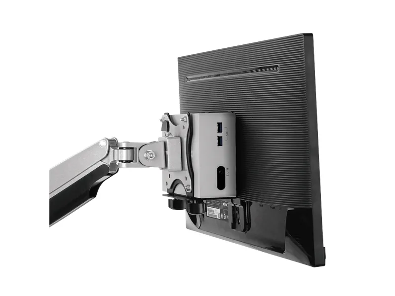 3 installationsmuligheder: Klemt på en stang; via VESA-plade; under skrivebordet