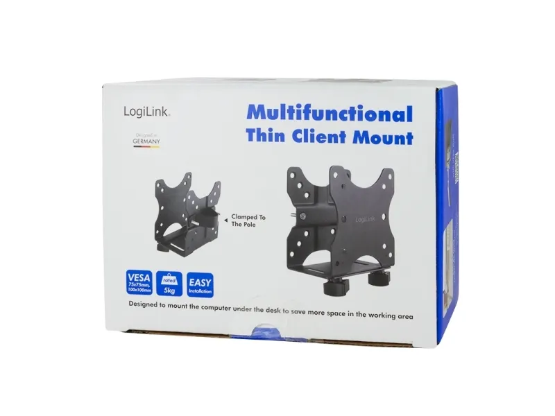 holderMed den multifunktionelle Thin Client-holder har du mere plads i dit arbejdsområde. Den er udviklet til nemt og sikkert at montere din Thin Client / mini-computer enten under skrivebordet, via VESA-pladen eller på en stang. De medfølgende remme sørger for endnu større stabilitet og sikkerhed.