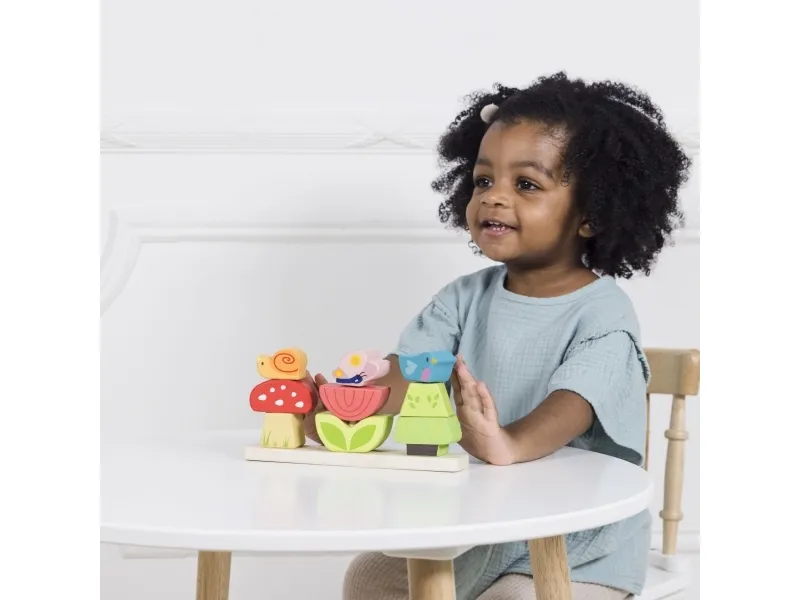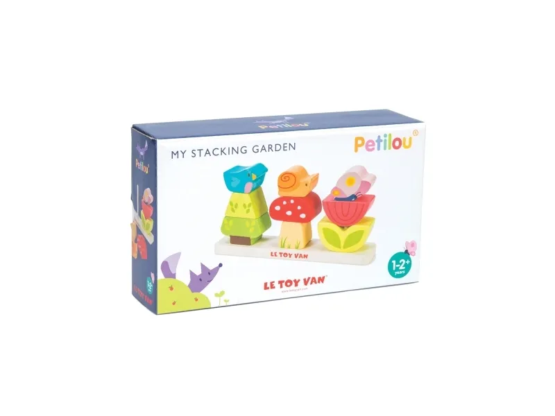 Charmig träleksak med 9 färgglada bitar att stapla på varandra. Bygg en padda, ett träd och blommor och lägg till en trädgårdsvän. Perfekt för små händer. Tillverkad av massivt hållbart trä och färgad med vattenbaserad färg, testad för barn från 12 månader. Ingår i serien "Petilou" från LE TOY VAN.