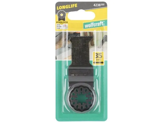 The powerful and durable HCS blade with straight, 35 mm wide cutting edge is suitable for cutting recesses and making plunge cuts in wood, chipboards, laminate, parquet and plastic. This blade gives you good control and clean results, particularly if you want to work on already installed or laid workpieces. The blade fits all vibration saws with Starlock receptacle for optimal force transmission.