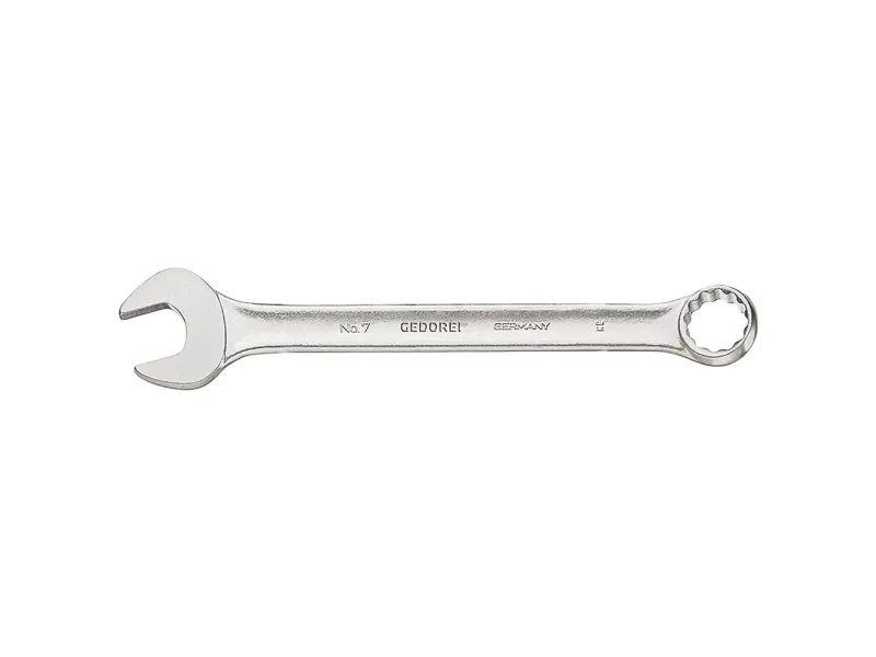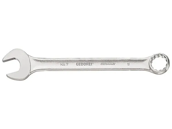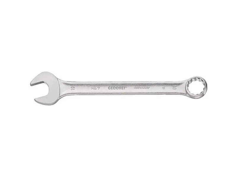 Acc. to DIN 3113 Form A, ISO 3318, ISO 7738. Ring 15° offset from shaft, shaft in girder pattern. Sizes 3 to 5.5 with hexagon ring, up from size 6 with UD profile. Gedore vanadium steel 31CrV3, chrome-plated. * not standardised.