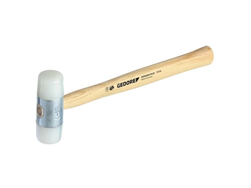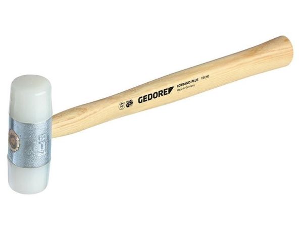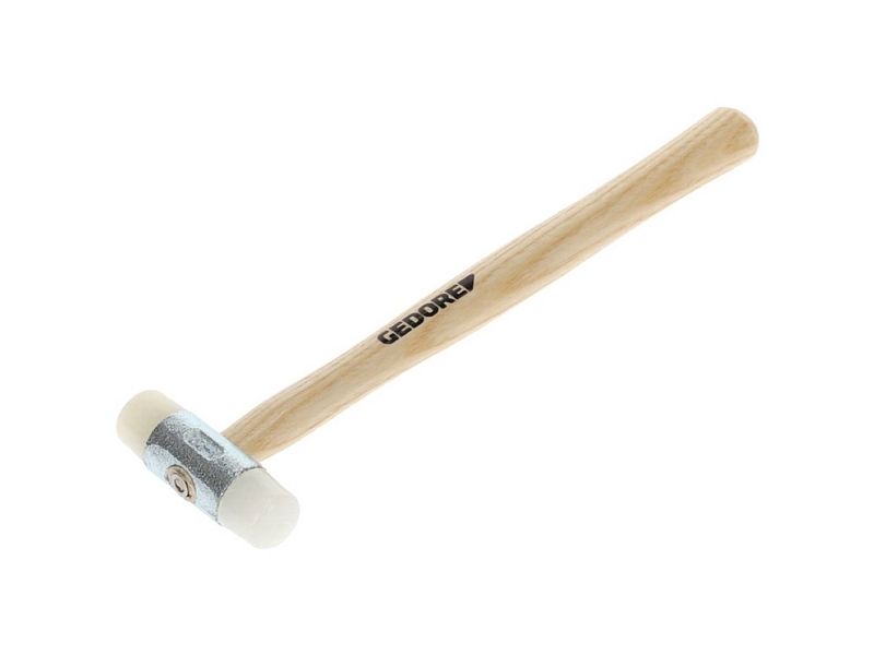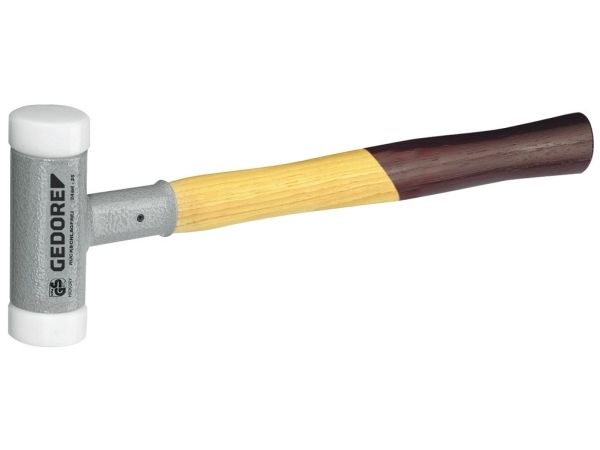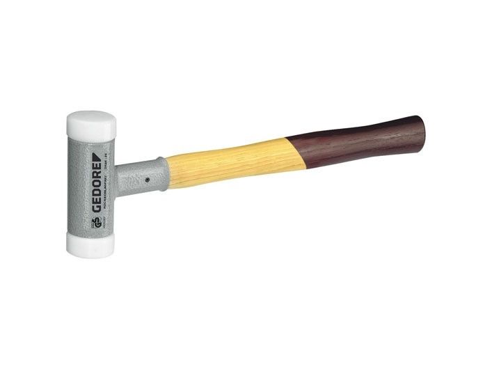 With exchangeable heads made from impact-resistant nylon. With ash handle. 60 Shore D.