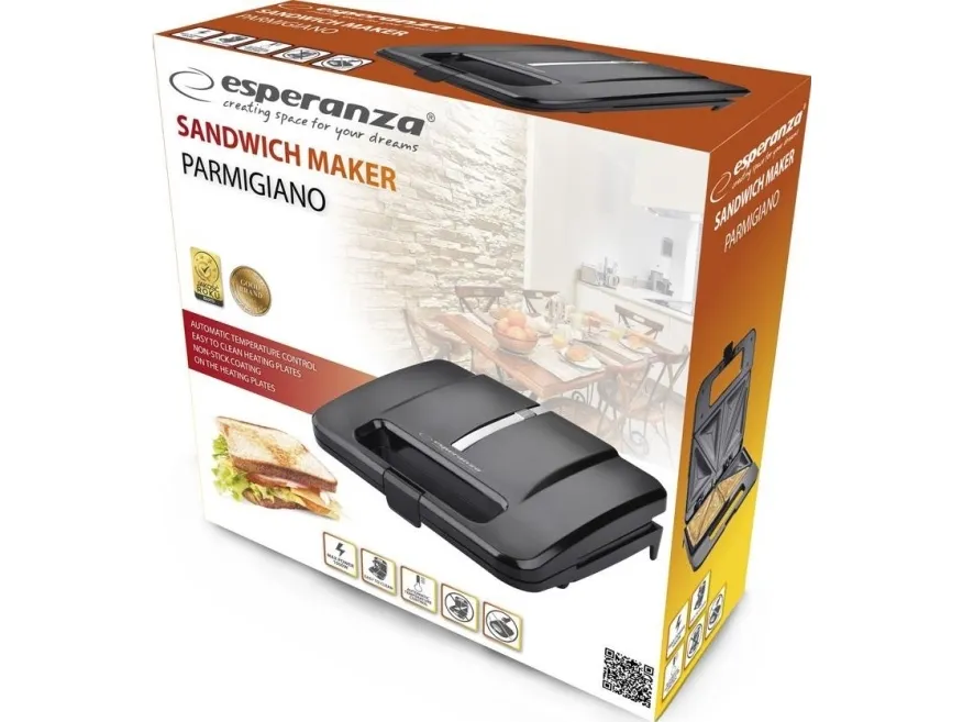 Sandwich maker PARMIGIANO with plates coated with non-stick surface, it's easy to clean just with a paper. The fast heating process allows you to have your desired sandwiches in few minutes. If you want to have very tasty sandwich every morning, please fell invited.