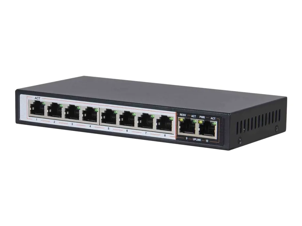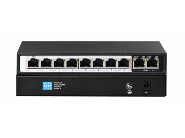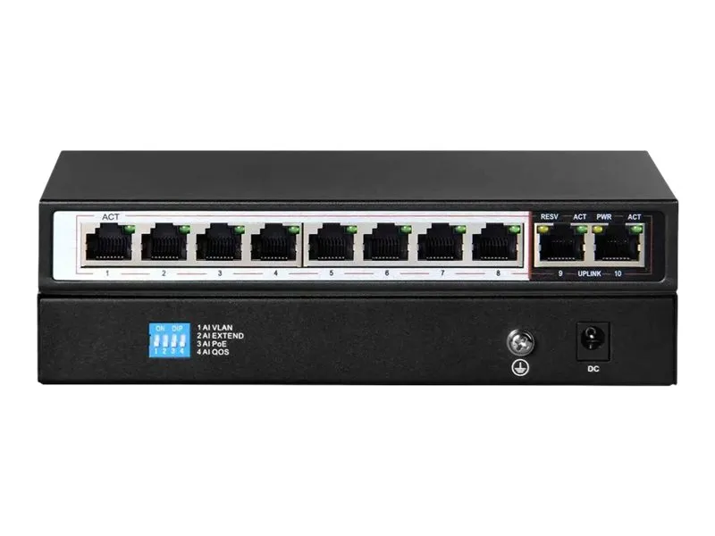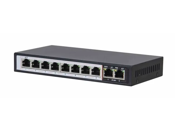 Extralink PERSES - Switch - ohanterad - 8 x 10/100/1000 (PoE+) + 2 x 10/100/1000 (upplänk) - skrivbordsmodell - PoE+ (96 W)