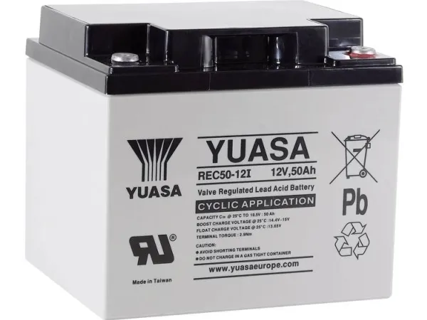 ULDen effektive Yuasa REC er designet til cykliske anvendelser. Udstyret med bly-kalcium-gitter til høj cyklusstyrke og med mikroporøs glasfiberfleece for at undgå lodrette syrelag. Med specielle additiver i elektrolyt for at undgå sulfatopbygning.