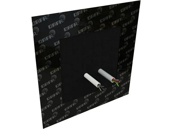 DAFA AirVent UV / Radon kabelkrage 195x195mm för tätning av undertak och vindskydd. Märkning för ø80mm burk och ø7-ø22mm kabel.