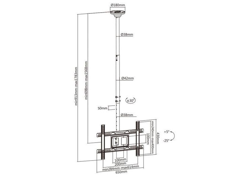 Maclean MC-803 - Konsol - för LCD-TV - metall - svart - skärmstorlek: 23"-100" - takmonterbar