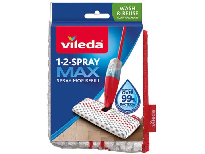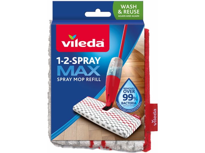 Vileda's 1-2 Spray Max double-sided microfibre refill means you can flip it over when one side is dirty and clean a larger area. The red and white microfibres pick up dust, dirt and hair particles making sure your floor is perfectly clean. It also removes 99% of bacteria and viruses with JUST water so no need for harsh chemicals. It's washable at 600C and can be washed up to 200 times before you need to replace it. Removes E. Coli & S. Aureus and Bovine Coronavirus from sealed wooden floor & ceramic tile as tested at a 3rd party lab.