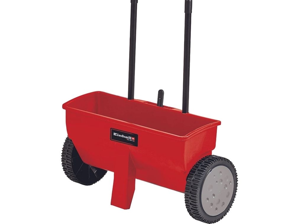 The GC-SR 12 spreader is a robust, practical tool with which you can distribute fertilizers, seeds or winter grit evenly, quickly and effortlessly. With the double push-bar you can guide the spreader easily and safely. Spring locks on both sides enable storage in minimum space. The housing of the BG-SR 12 is made of high-grade, impact-resistant plastic, while the roller is resistant to both corrosion and weathering. There is an adjustment lever for regulating the distribution rate.
