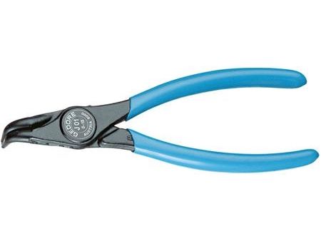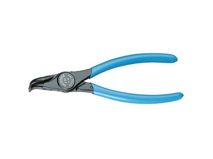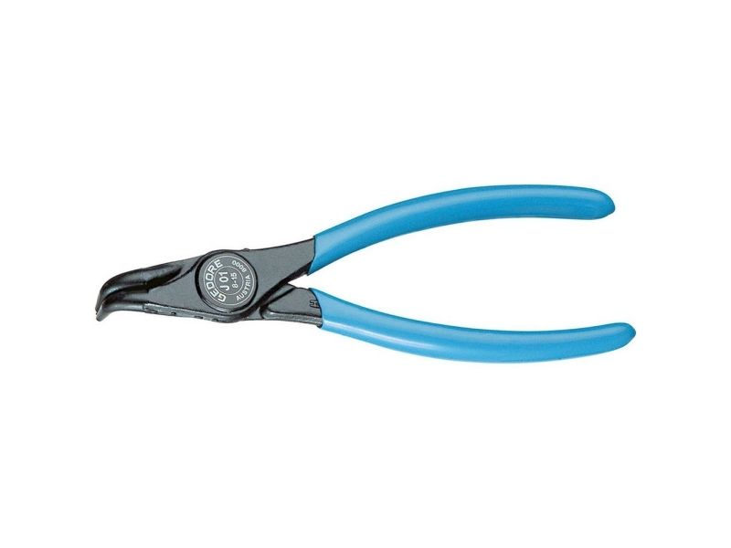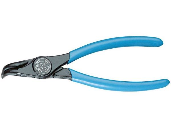 For retaining rings as per DIN 472, DIN 984. DIN 5256 Form D. 90° angled tips. Forged Gedore chrome-vanadium special hardened and tempered steel. Precision machined, oil hardened and annealed. Black, with blue dipped handles.