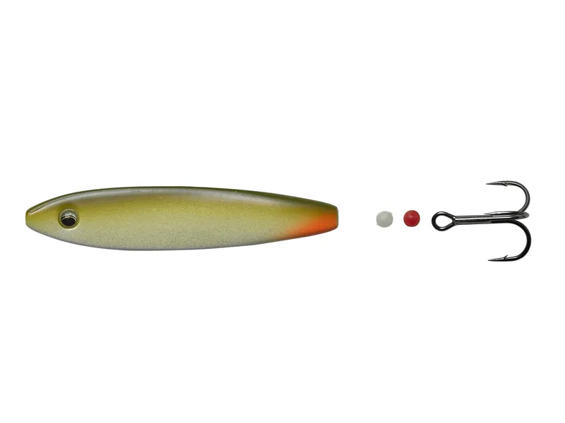 Hotshot SD in-line lure is one of the latest addition to the seatrout lure range. The Hotshot are designed to give you distance and it’s large surface, generate a wide movement pattern, on both slow and fast retrieve. On spin stop – you will experience the 360 rotation, which will trigger most seatrouts. Hotshot are Zink material, delivered with quality tournament treble Hook and 2 soft glow beats. Kent Andersen have developed hotshot