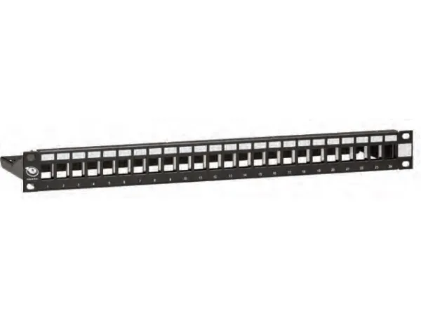 - Unique 'In-Line' angled port panel facilitates cord routing directly into the vertical side management, saving on space in the rack