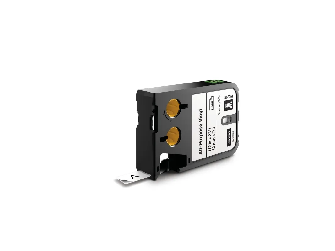 DYMO® XTL tape, vinyl, 12 mm, sort på hvid