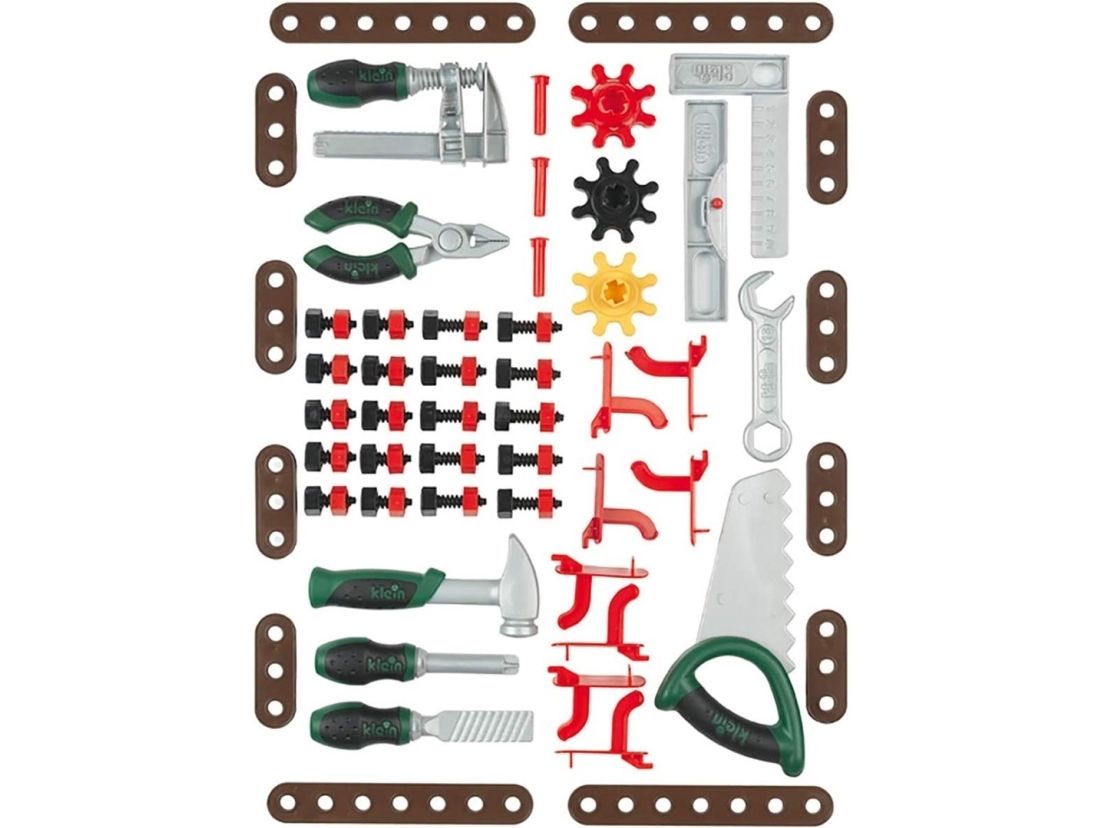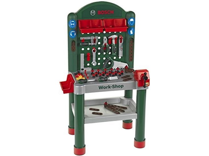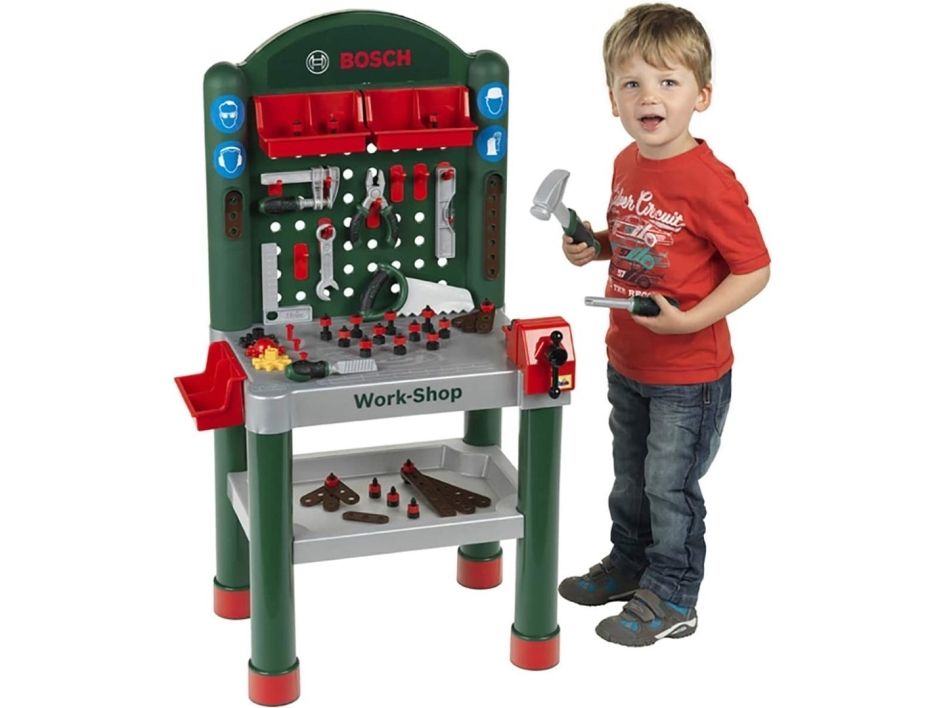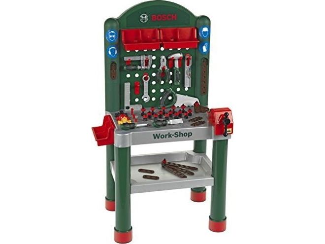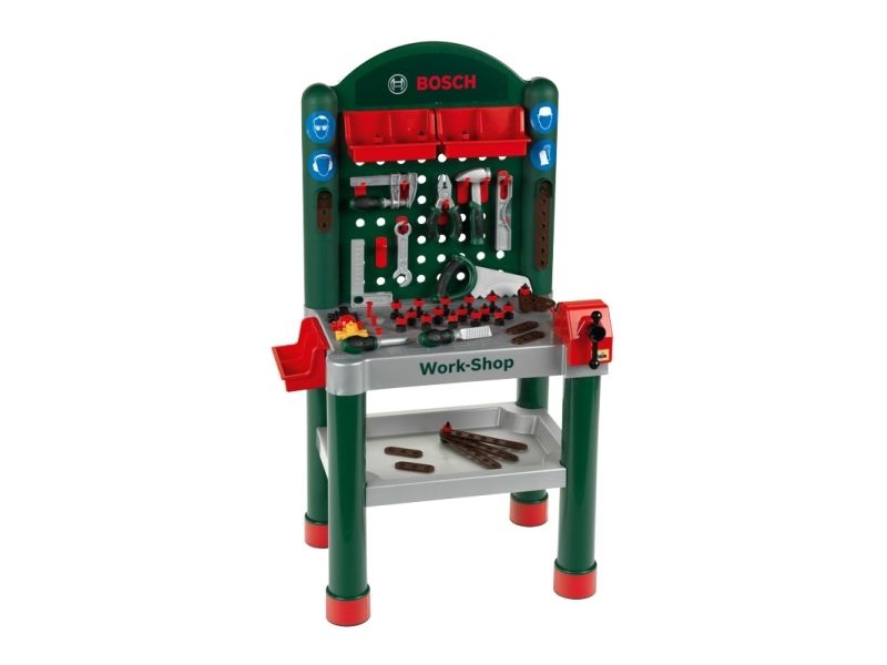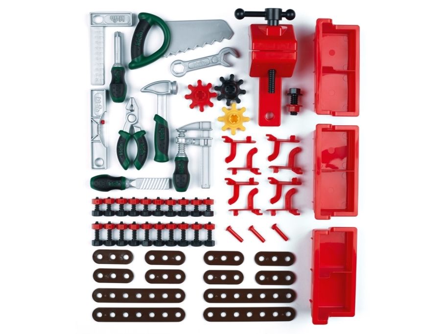 Workbench, Benchtop with learning function, vice, 3 storage boxes, big storage compartment, various bolts, nuts and planks and many additional tools