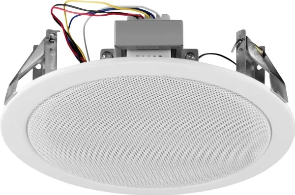 PA ceiling speaker;#100 V transmission technology;#15 cm (6") full range speaker;# Metal housing with protective speaker grille;#Power taps: 10/6/3/1.5 W;#Quick-mounting facility with spring clips;#Connection via spring-loaded terminal;#For a ceiling thickness from 10 to 40 mm;;Manufacturer information:;MONACOR INTERNATIONAL GmbH & Co. KG