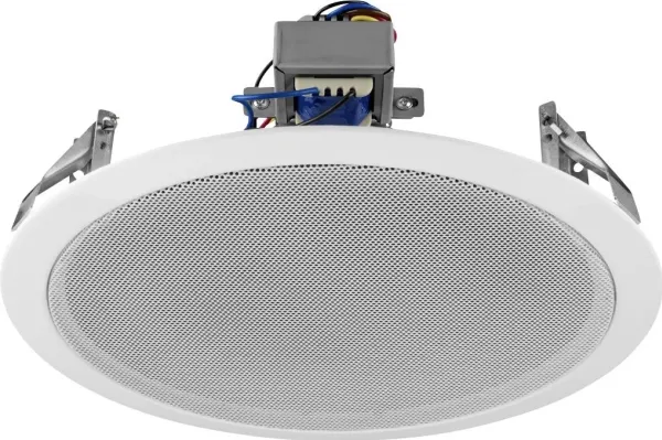 PA ceiling speaker;#100 V transmission technology;#20 cm (8") full range speaker;#Metal housing with protective speaker grille;#Power taps: 10/6/3/1.5 W;#Quick-mounting facility with spring clips;#Connection via spring-loaded terminal;#For a ceiling thickness from 10 to 40 mm;;Manufacturer information:;MONACOR INTERNATIONAL GmbH & Co. KG