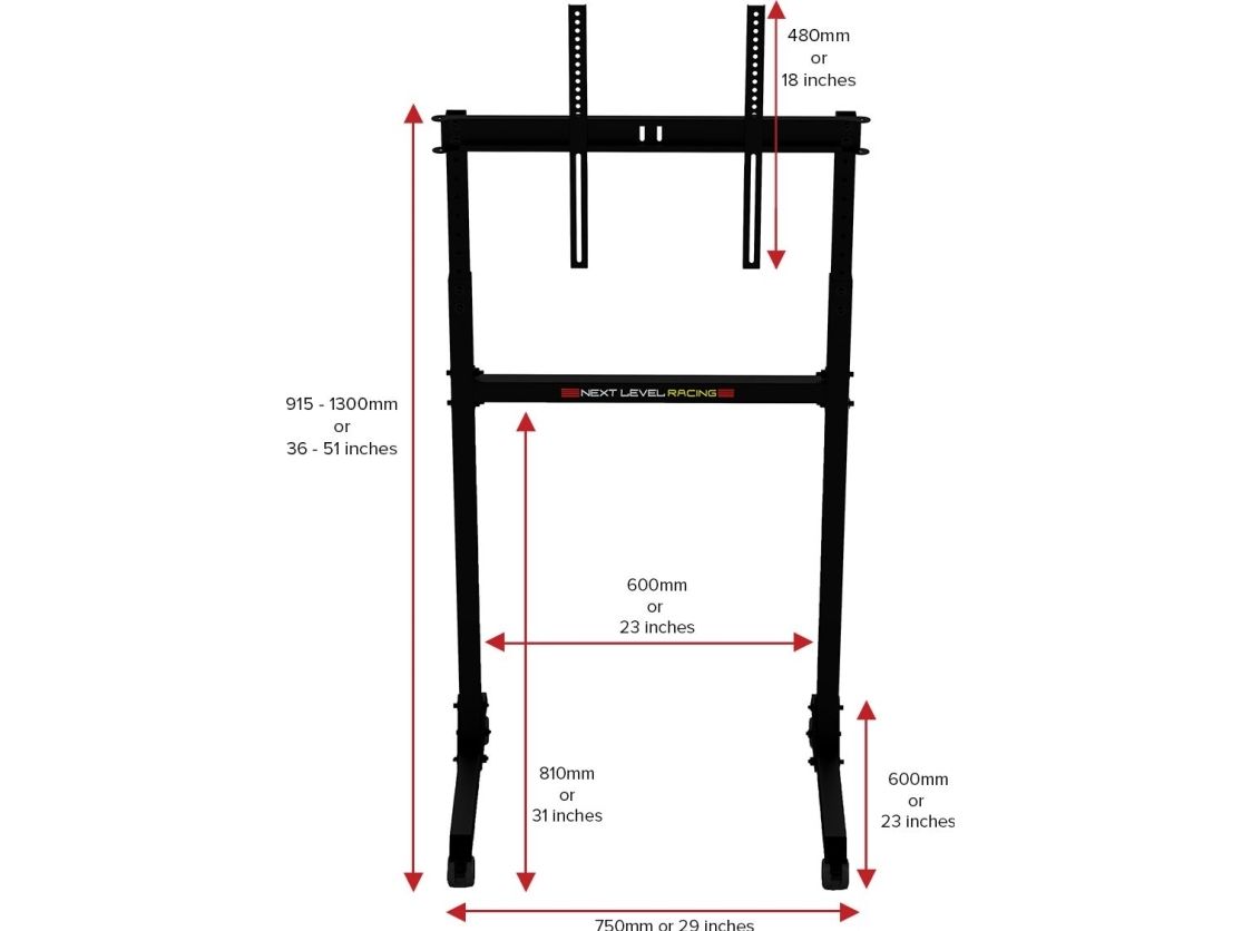 Next Level Racings fristående monitorstativ kompletterar din racingsimulator för att ge den ultimata inlevelsen av att tävla som ett proffs med stödjande skärmar. Stativet har både låsbara hjul för enkel förflyttning och höjdjusterbara fötter, valet är ditt. Designen är baserad på feedback från kunder så att du kan ha dina skärmar i den perfekta position du väljer, oavsett om det är direkt bakom ratten eller längre bak från din cockpit och så att du enkelt och snabbt kan ändra skärmens position. Eftersom den är helt fristående och har låsbara hjul är den också det perfekta monitorstativet för evenemang, mässor och simracingcenter.