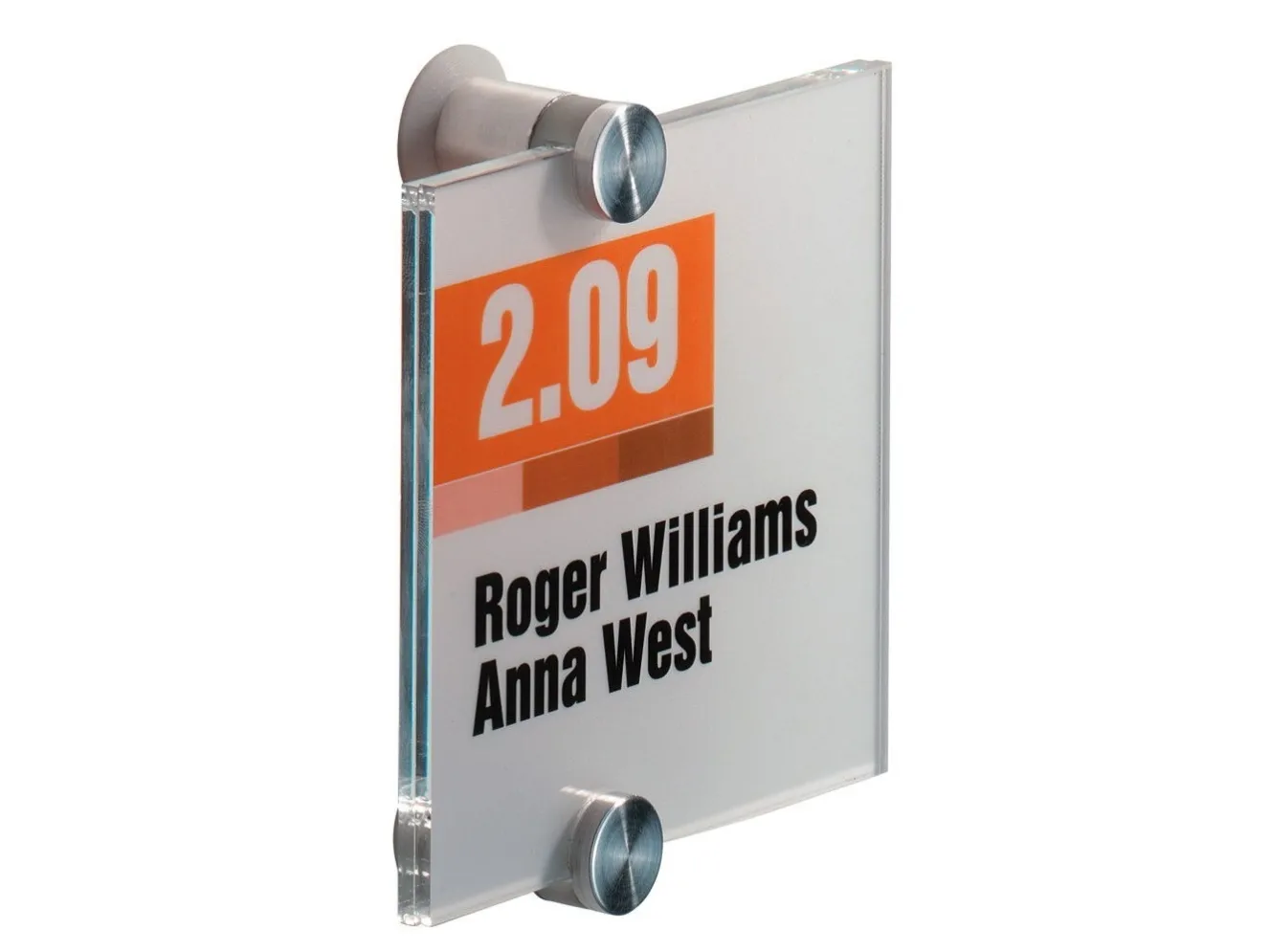 Elegant and modern door sign range, made of high quality Perspex. The high value appearance is achieved through the use of crystal clear acrylic plates and semi-transparent inserts. The door sign can be easily mounted and is supplied with 2 aluminum screws. The inserts can be easily printed with laser printer.