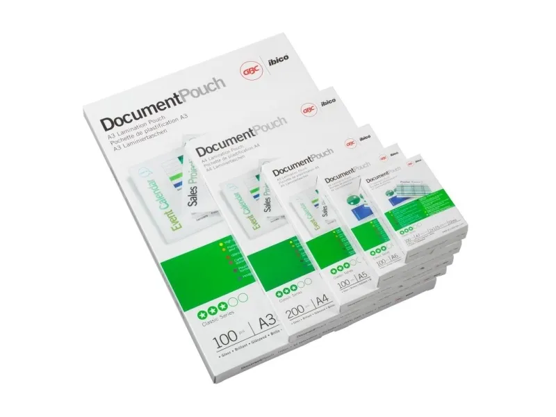 Kortlamineringsfickorna finns i olika vikter och storlekar under A5 för alla olika användningsområden från id- och medlemskort till små skyltar. Utformade att omsluta kortet helt. Fickorna är högglansiga och kompatibla med alla ficklamineringsmaskiner.