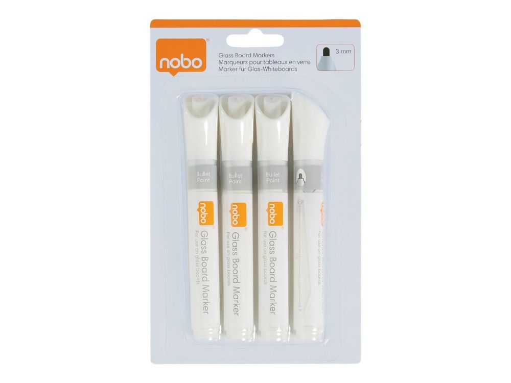 Whiteboardmarker Glass Board Nobo hvid - (4 stk.)