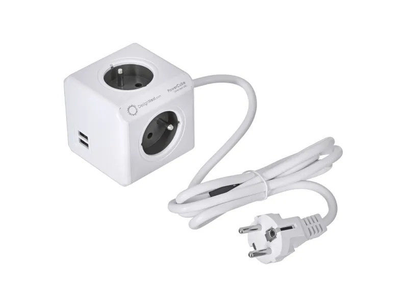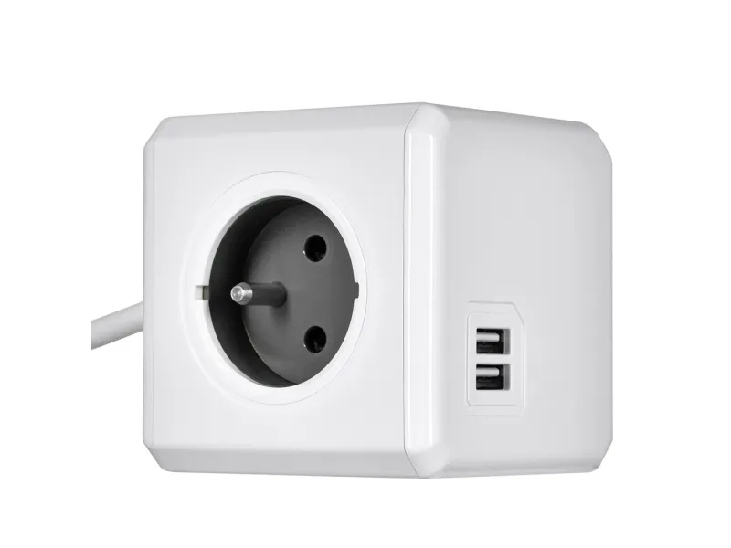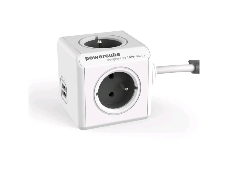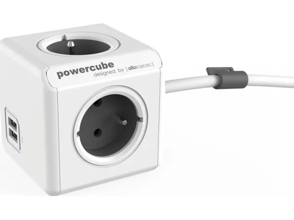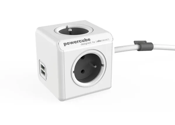 Allocacoc PowerCube extended usb - Kraftdistributionsenhet - AC 250 V - utgångskontakter: 4 (USB, Typ E) - 1.5 m sladd - vagnsgrå