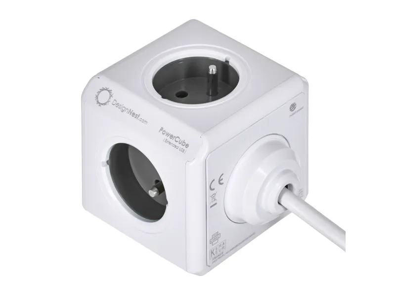 - Prevents plugs from blocking each other, due to its cubic shape