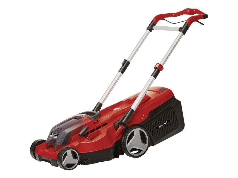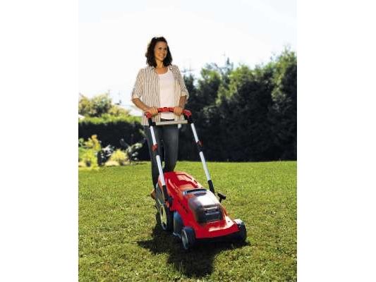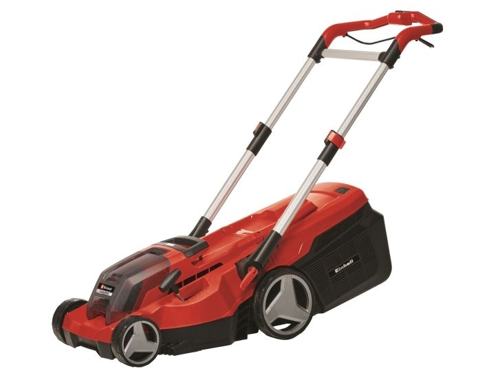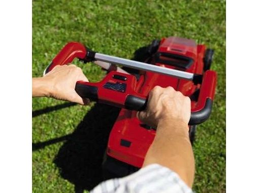 The powerful Einhell Rasarro Cordless Lawn Mower makes easy, cable-free work of grass cutting – in every corner of your garden. Recommended for lawn areas up to 450 m², the lawn mower is powered by two 4.0 Ah PXC batteries. The Power X-Change batteries can be used in all Einhell devices in this system range. The battery charge indicator uses three LEDs to show the available energy reserves at all times. The high-speed system charger (Power X-Twincharger) will have the batteries recharged and ready for action in next to no time. The mower makes its way through the grass in your garden with so-called "brushless energy", i.e. a brushless electric motor. In the process, the 6-level central cutting height adjustment from 25 to 75 mm and a cutting width of up to 38 cm can be adapted to suit your individual lawn requirements. The integrated grass comb will even allow you to cut the grass right up to the edges. The high wheeler is equipped with wide wheels that protect the lawn. And, thanks to the ergonomically designed handle area, you won't get tired while working. The telescopic, height-adjustable long handle can be individually adapted to each user. The long handle can be folded for easier storage of the lawn mower. A carry handle is integrated for easy transportation. The long handle is made of aluminum, which makes it lightweight yet sturdy. The grass box has a capacity of 45 liters and comes with a practical filling level indicator. The product is supplied with batteries, a high-speed charger and a handy mulching plug.