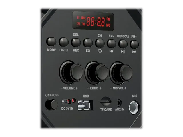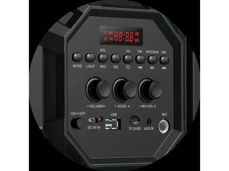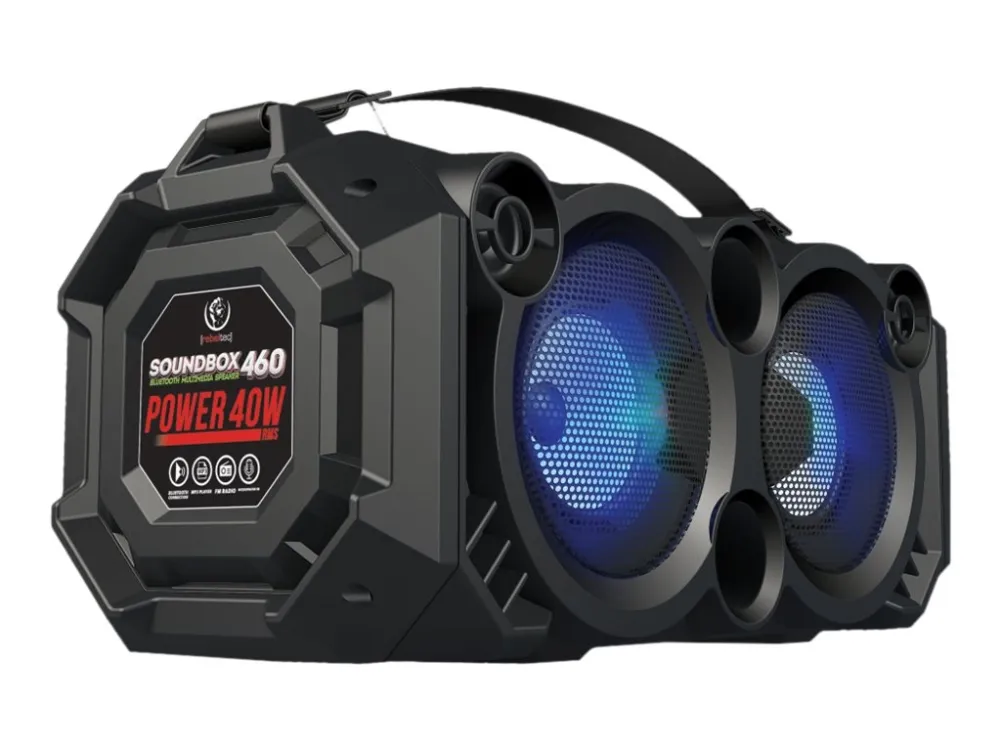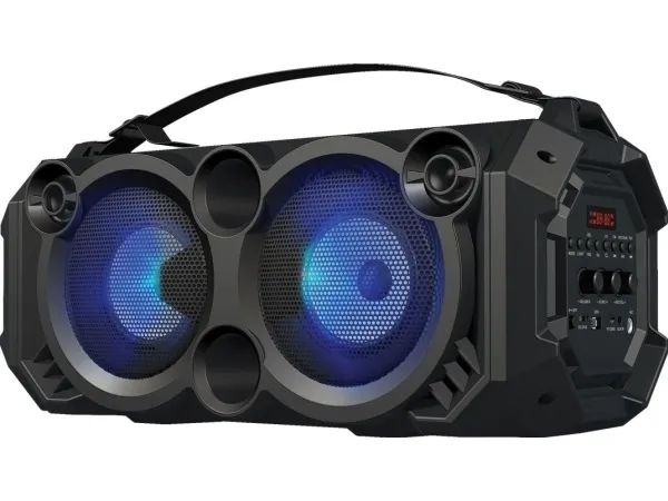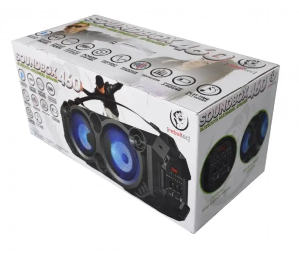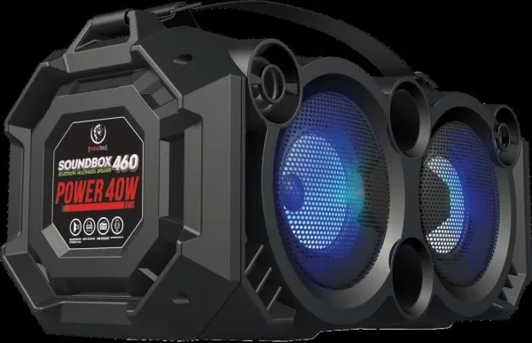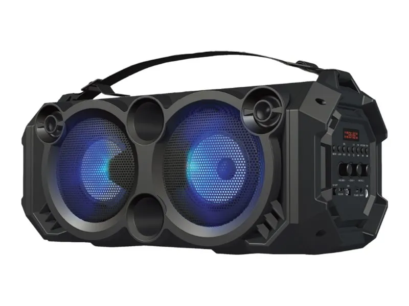 Rebeltec SoundBox 460 är utformad för bärbar användning och erbjuder en mångsidig ljudupplevelse med flera olika ljudformat, inklusive WAV, MP3 och FLAC. Denna boombox-högtalare är utrustad med RGB-belysning och kombinerar visuell känsla med ljudkvalitet. Med ett inbyggt uppladdningsbart litiumjonbatteri på 4000 mAh garanterar den långvarig ljudupplevelse, vilket gör den lämplig för utomhusmöten och evenemang. Det är enkelt att hämta medieinnehåll via USB-host och flashminneskort, vilket ökar bekvämligheten, medan Bluetooth 4.2-anslutningen möjliggör trådlös streaming från olika enheter. De anpassningsbara kontrollerna för volym, eko och mikrofon gör den lämplig för karaokeentusiaster såväl som för vanliga lyssnare.