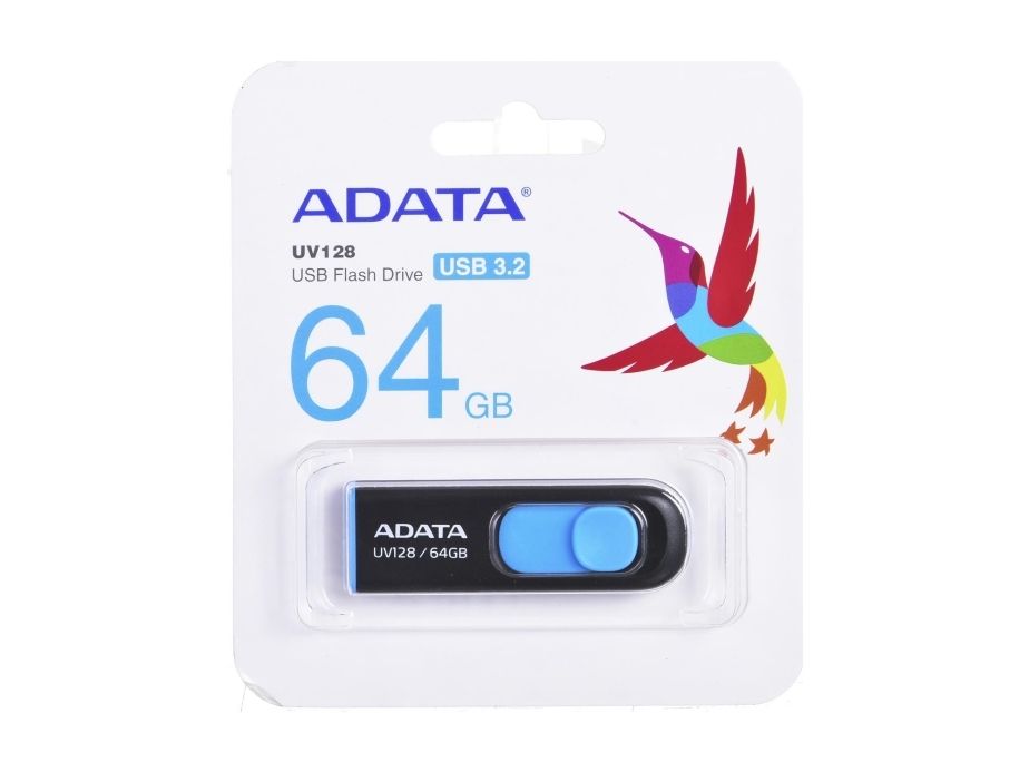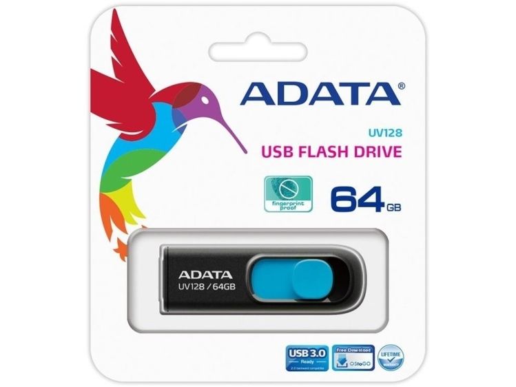ADATA DashDrive UV128 - USB flash-enhet - 64 GB - USB 3.0 - svart, blå