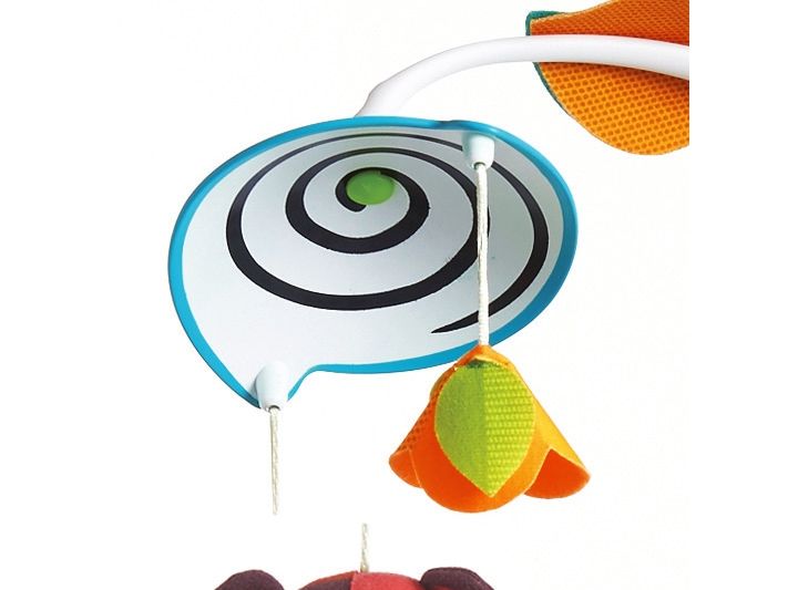 - Uniquely designed mobile with engaging black and white spirals that stimulate baby's visual cognition.