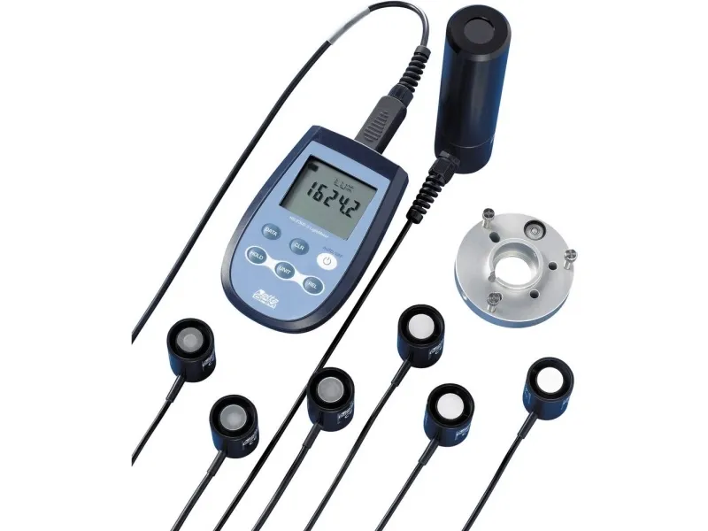 Luxmeter HD2302.0 med sonde LP471 bliver PHOT Kit MIN · MAX · AVG · REL · HOLD Robust måleapparat HD2302 SICRAM med tilslutning til veksel-sonde. Forkonfigureret Kit med LP471 bliver PHOT til måling af beleuchtunsstarke (synligt område).