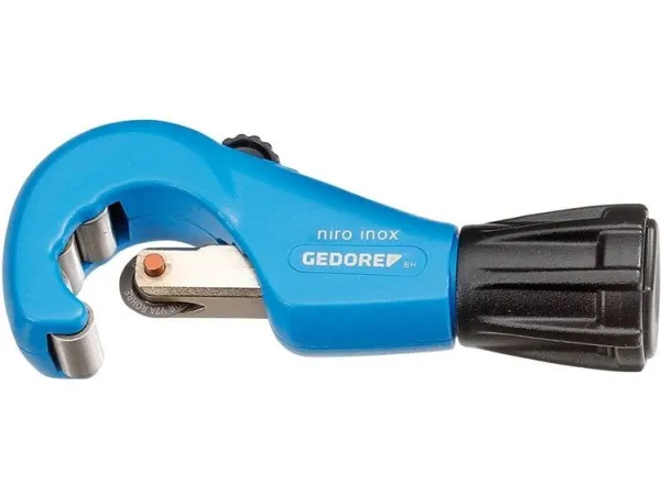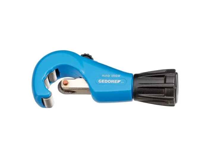 Easy cutting due to ball-bearing pressure rollers and cutting wheels. Cutting wheel changeable without tools. With retractable deburring tool, spare cutting wheel in handle. Cutting wheel with high service life. No. 2180 3 and 2180 4 body in pressure-cast magnesium, no. 2180 5 body in pressure-cast aluminium. No. 2180 5 with quick-release. Enamelled blue.Gedore 2964066. Weight: 335 g