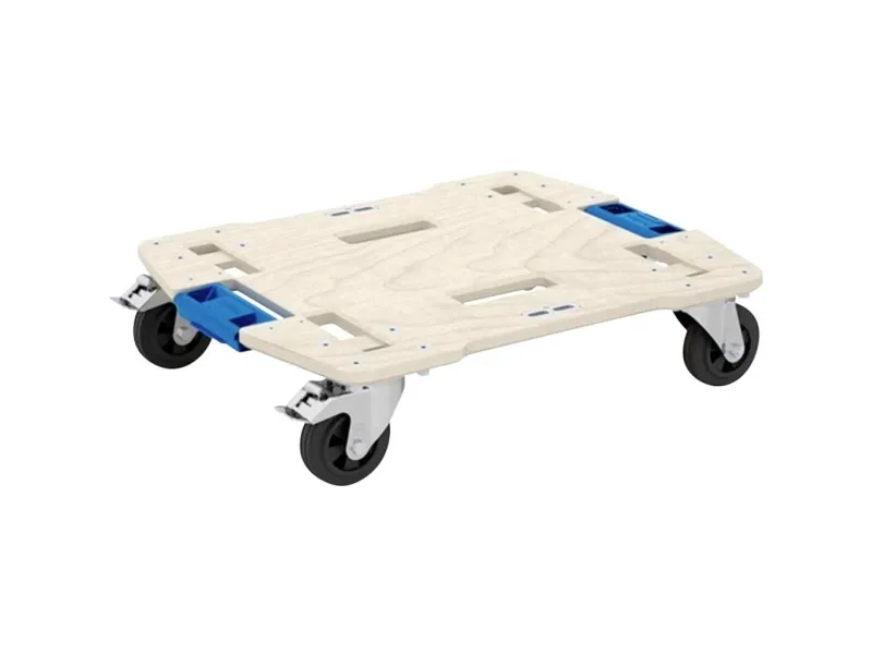 A coupler lever connects the roller to the WorkMo boxes Compatible with Sortimo® interior vehicle fittings and load safety Board from multiplex beech wood Solid rubber wheels of which two have a total brake Extra lashing points make for safe transfers of another load as well Loading capacity: 200 kg Dimensions: 612 x 493 x 144 mm Dimensions: 612 x 493 x 144 mm