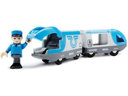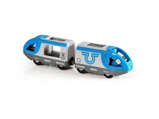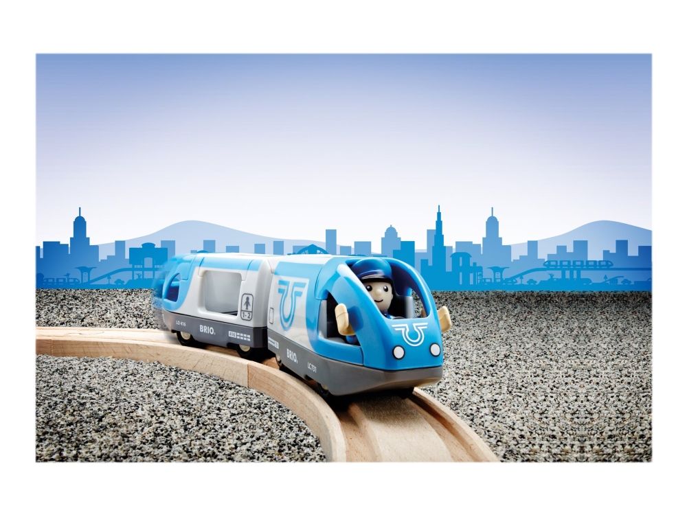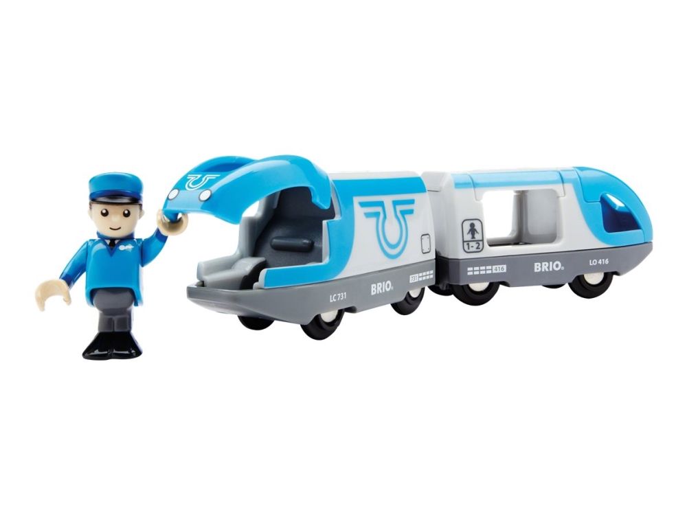 Detta moderna blå batteridrivna passagerartåg reser runt på hela BRIO tågbanan. I detta blå batteridrivna passagerartåg sitter lokföraren bekvämt i sitt säte, redo att ta med sig passagerarna på nya äventyr. Låt fantasin bestämma destinationen!