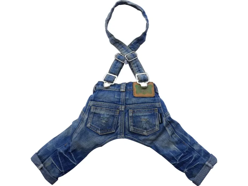 DoggyDolly Byxor med hängslen, denim, storlek-XS 18-20cm/31-33cm