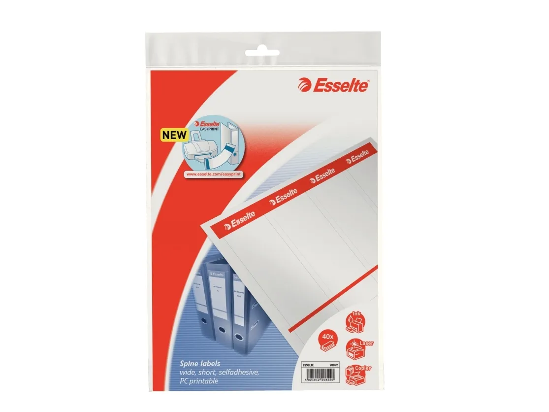 Esselte PC-baksida etiketter för pärmar kartong 59x192mm 10 ark (10K131X)