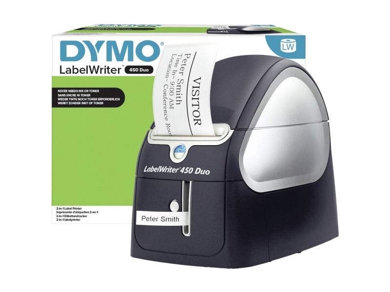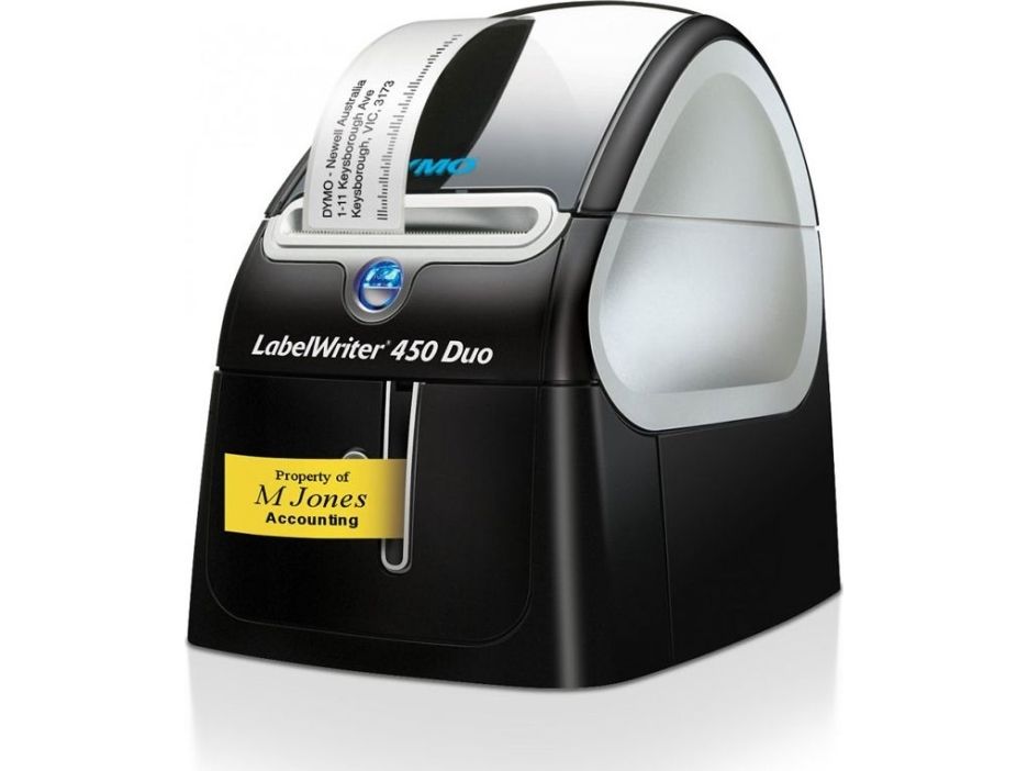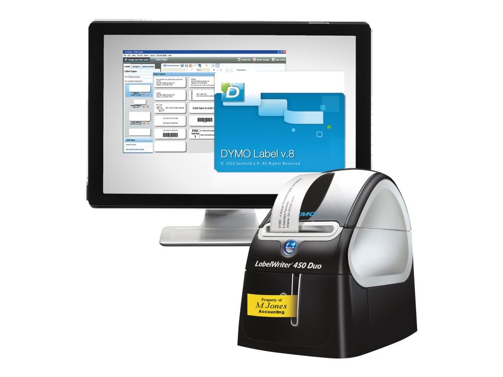 Skriv ut en mängd olika DYMO-etiketter med en mångsidig skrivare. Med DYMO LabelWriter 450 Duo klarar du i stort sett vilken märknings- eller posthanteringsuppgift som helst. Skriv ut imponerande adressetiketter, leveransetiketter, hängmappsetiketter, namnskyltar och annat, i höga hastigheter. OCH skriv ut permanenta DYMO D1-plastetiketter i en mängd olika storlekar och färger – perfekt när du behöver hållbara etiketter för kontoret eller arbetsplatsen. Som alla LabelWriter-skrivare behöver LabelWriter Duo varken bläck eller toner, och innehåller ett program som du använder för att skriva ut etiketter direkt från text i vanliga program, och mycket annat.