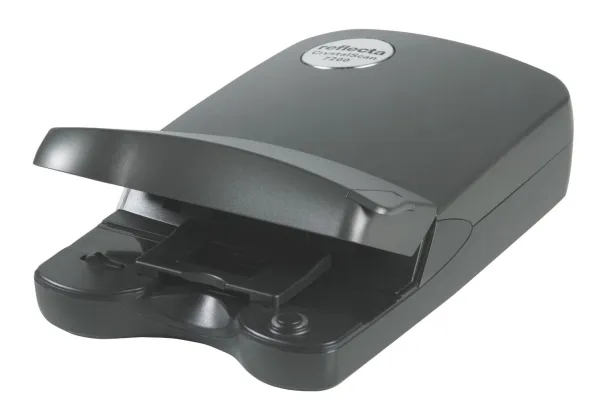 This scanner is the ideal device for high-resolution digitalization of your slides and negatives. The scanner is equipped with 7200 x 3600 dpi permitting extremely high-quality print production up to A4 size. You can scan slides (5x5) and negatives from 3 pictures with this scanner. Slides are scanned singularly in the front scanner slot. The fast scanning speed and the digital ICE3TM - hardware dust and scratch removal - enables the user to work effectively.