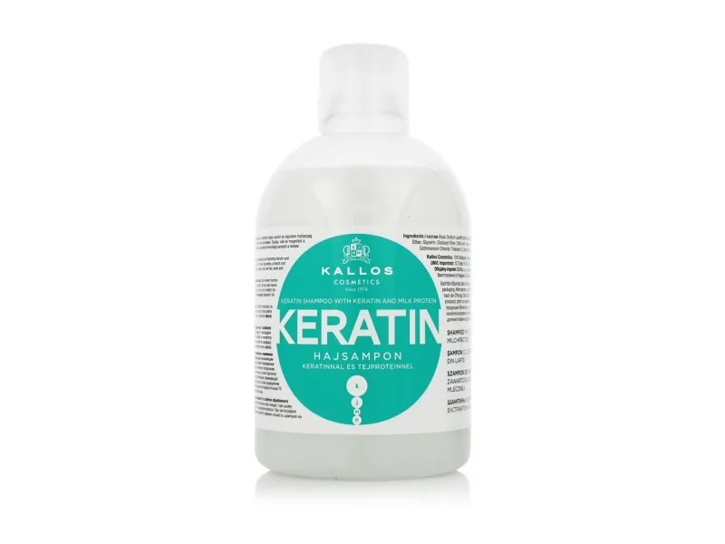 Kallos Keratin Shampoo with Keratin and Milk protein for dry, damaged and chemically treated hair\n\nIts regenerating and hydrating Keratin and Milk protein content gently cleanses the hair while rebuilding it’s natural structure, refilling the outer damaged layer of the hair. Nourishes, protects and strengthens dry and damaged hair. With its use hair becomes silky, easily manageable and brilliant.