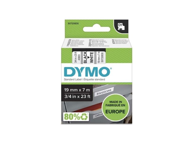 Labeltape DYMO® D1 sort på hvid 19mm x 7m