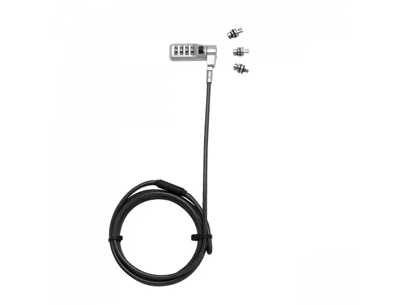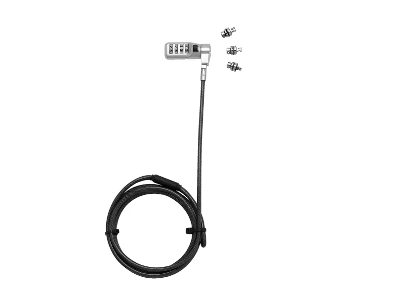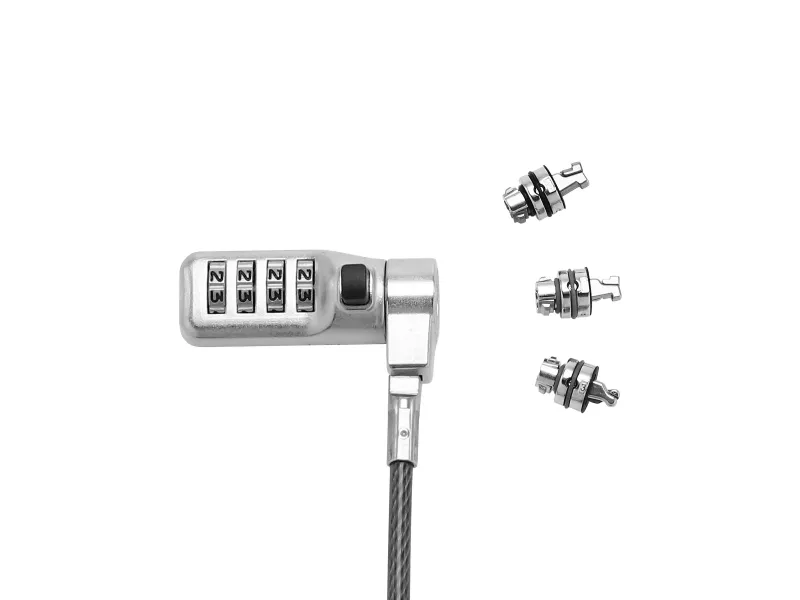 Targeted prevention is the answer. Thanks to this security cable lock with exchangeable head your lock will suit all kinds of devices. Easy, convenient and effective. No key and no compromise on security: easily set your individual 4-digit numeric code . Notebooks as well as projectors, monitors and printers can be effectively secured with the 3-way exchangeable heads.
