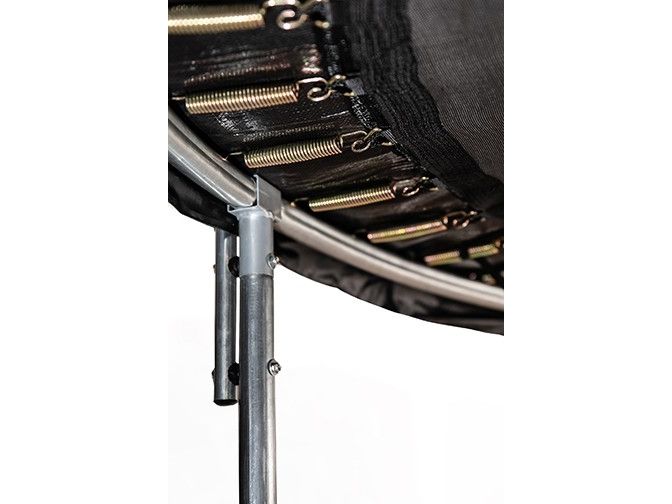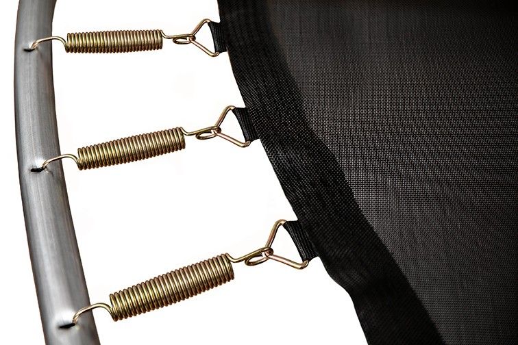 Fjädrarna är placerade utanför nätet för att säkerställa att hoppytan är helt åtskild, vilket ökar säkerheten.