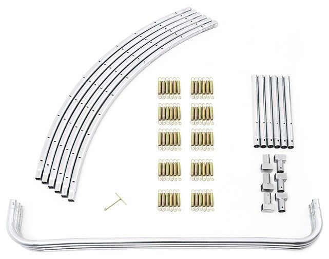Dimensioner: - Ramdiameter: 374 cm - Trampolinhöjd: 260 cm - Ramrör: Diameter 38 mm, väggtjocklek 1,2 mm - Material: Galvaniserat stål - Antal ben: 5 - Nettovikt: 54,5 kg