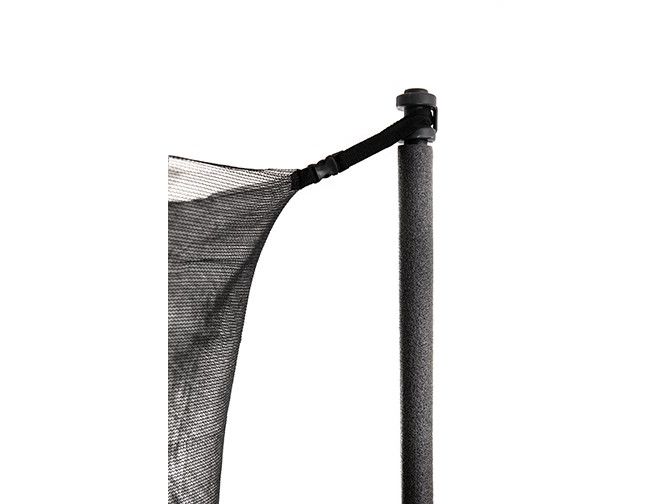 Det inre nätet i JumpPro IN fästs med band som bibehåller avståndet till stolparna och separerar hopputrymmet från fjädrarna. Nätet har tre förstärkta sektioner som ökar dess hållbarhet och tillåter optimal sträckning, vilket maximerar hopputrymmet. Stångkopplingen med klickfästning gör hela systemet mer effektivt och enklare att montera. Dessutom är stolparna täckta med 10 mm tjockt skum.