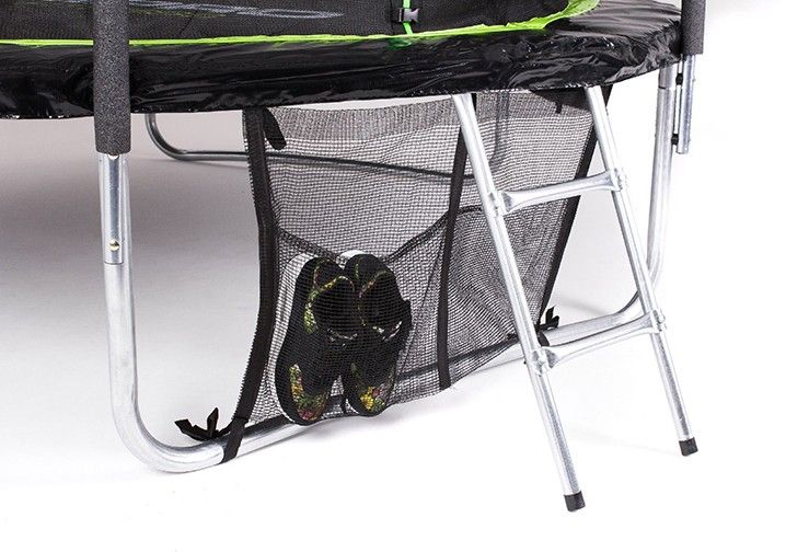 Trampolinen är designad för enkel åtkomst till mattan. Trampolinduken är placerad på en höjd av 80 cm och enkel upp- och nergång är möjlig tack vare den medföljande stegen.