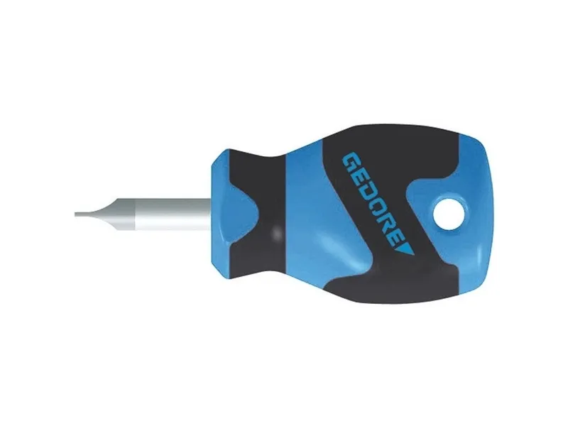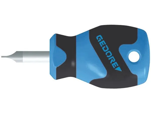 Acc. to DIN ISO 2380-2A, blade tip acc. to DIN ISO 2380-1 Form B. For confined spaces. 3-component handles Power-Grip3 with hanging hole. Ergonomic handle design enables precise and fatigue-free working. Positive-fit joint of handle and blade for optimum transmission of force. Type of drive marked at end of the handle. Blade from Gedore molybdenum-vanadium-Plus tempered steel.